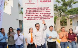 El alcalde de Ciudad Madero inauguró ayer la pavimentación de la calle Manuel Gutiérrez Nájera, en la colonia Los Mangos, una vialidad solicitada durante muchisímos años por los vecinos del sector.
