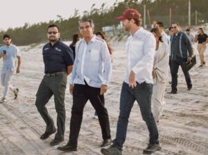 Para comenzar, el aparato de comunicación oficial destacó la imagen en la que el mandatario estatal y el nuevo secretario caminan juntos por la playa, en una visita de supervisión a la playa donde anida la tortuga lora.