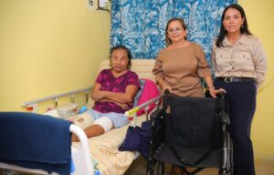 Rossy Luque, presidenta del DIF de Altamira; y Blanca Guzmán, síndica primera del Cabildo de Altamira, entregaron la silla de ruedas y platicaron con la beneficiaria.