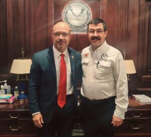 Humberto Prieto, presidente de la Junta de Gobierno del Congreso de Tamaulipas recibió y saludó a los dos secretarios en su oficina. Ahí, dialogaron como parte del acercamiento entre los dos Poderes, el Legislativo y los representantes del Ejecutivo.