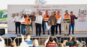 El motivo: ‘el banderazo’ de arranque de la construcción del tramo del emblemático Tren del Golfo de México que conectará el punto del Arroyo ‘El Sauz’ con Nuevo Laredo.
